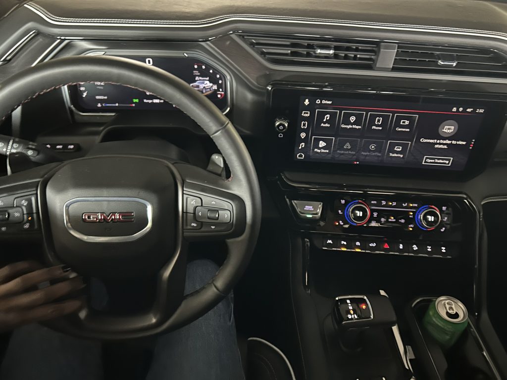 Let’s be honest — the Sierra looks good and has for years. It’s striking and beautiful. Its bold grille, sculpted lines, and elevated stance make it a head‑turner whether you’re pulling into the carpool lane or a weekend brunch spot. It’s rugged yet refined — a perfect reflection of the modern parent and oddly enough motherhood, an unassuming symbol who does it all with grace and grit.